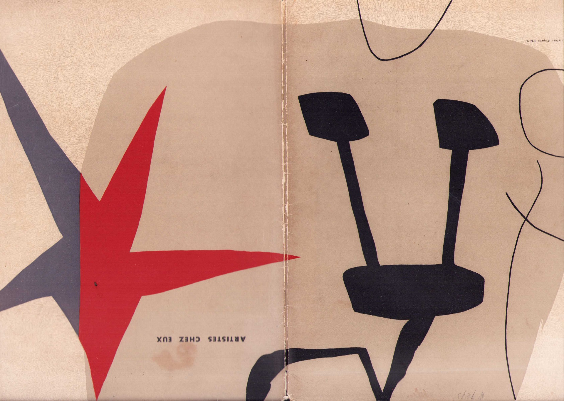 Dossier à feuilles mobiles illustré par Joan Miró, contenant des photographies en noir et blanc des artistes susmentionnés
