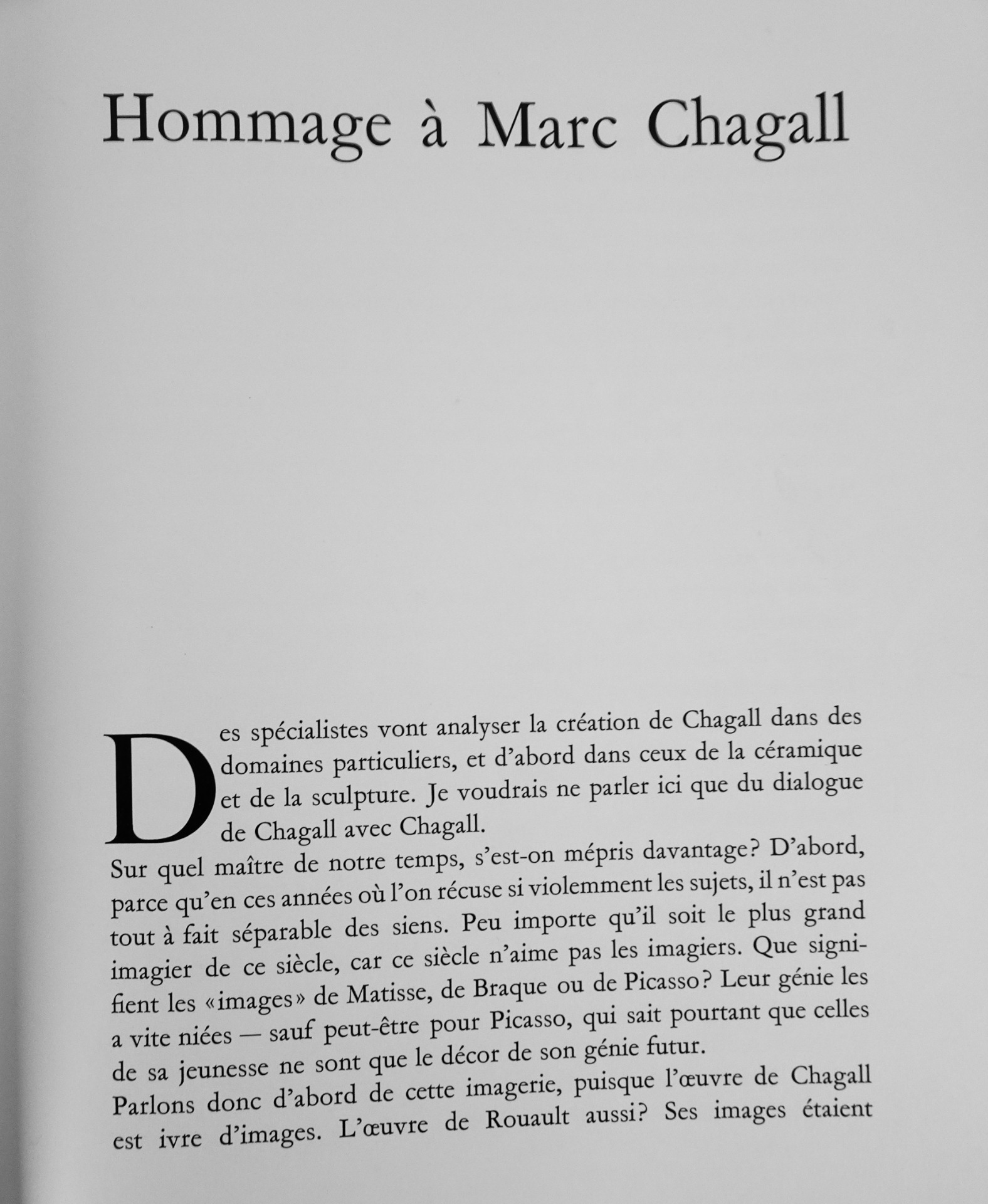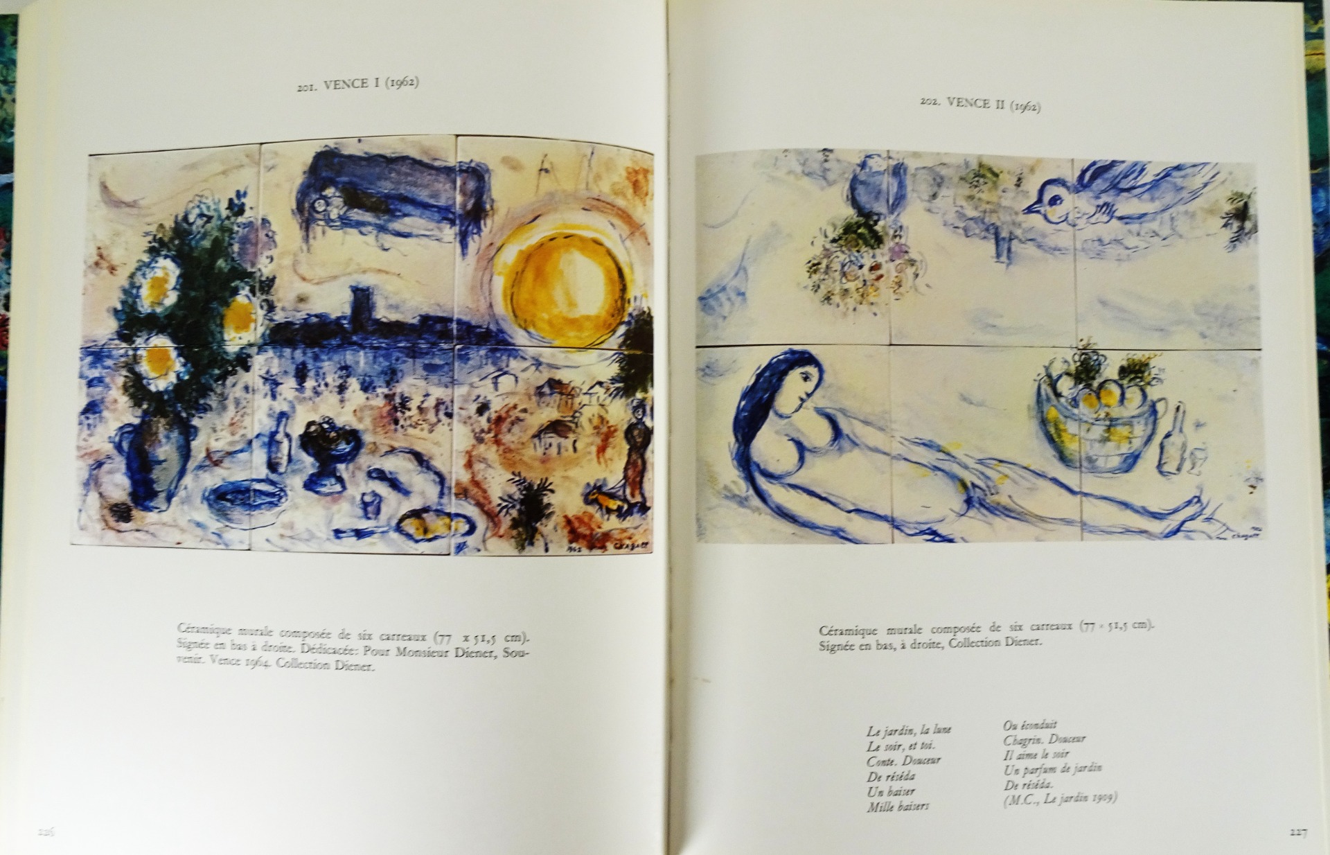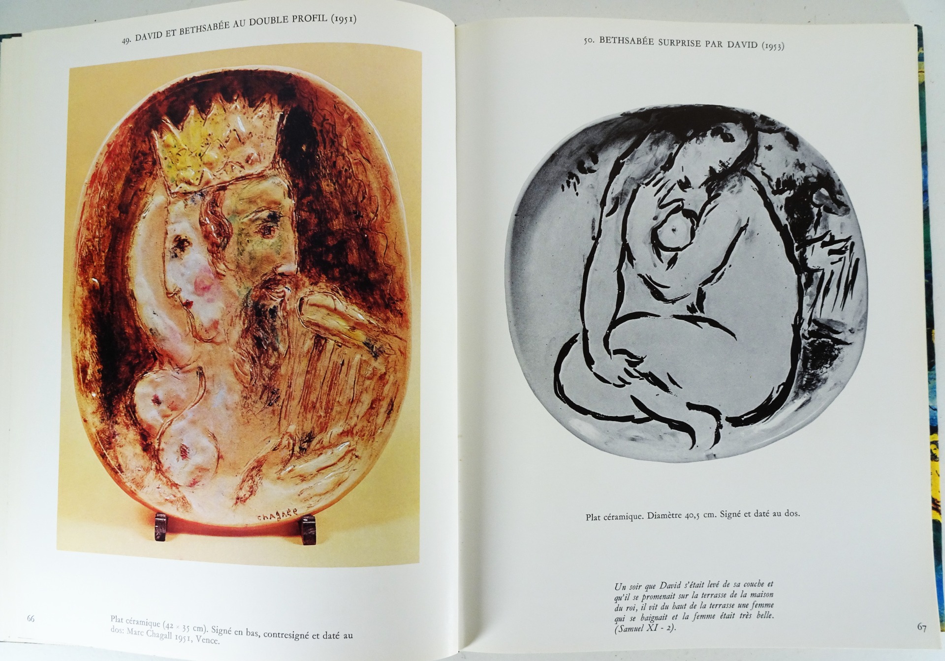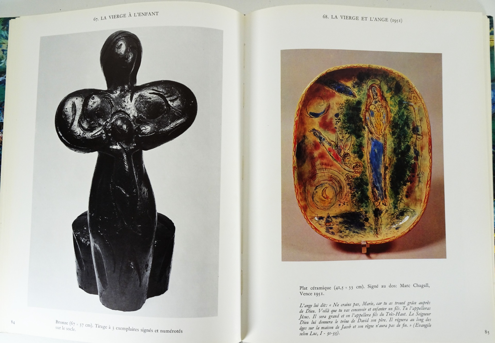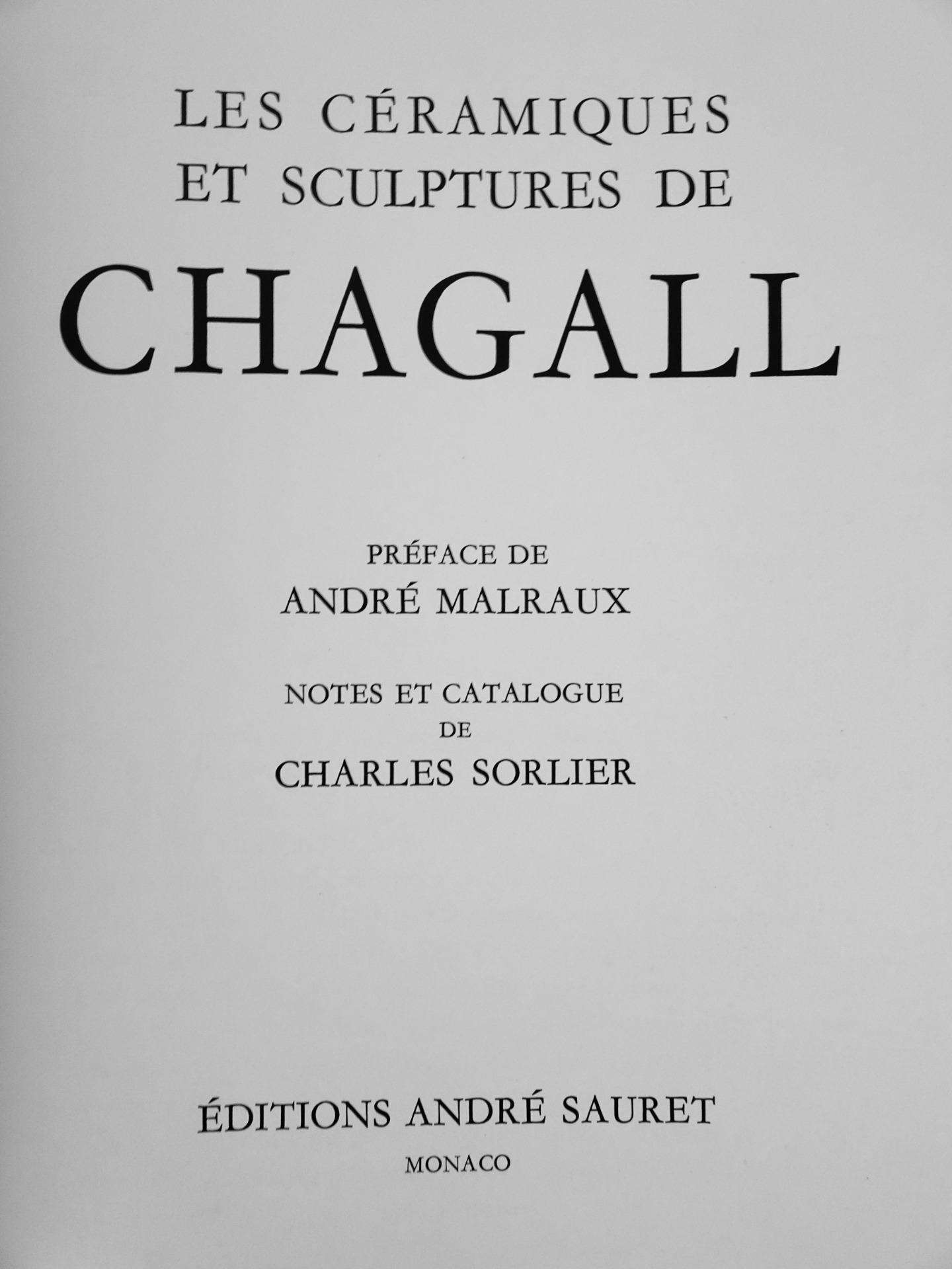 Imprimée et reliée à Lausanne, cette monographie de qualité aborde un aspect moins connu de l'oeuvre de l'artiste. « La céramique occupe une place très importante, quoique assez secrète, dans l'œuvre de Chagall. Ces pièces uniques, dont nous présentons aujourd'hui le catalogue, ont rarement été exposées, et peu d'amateurs ont eu le privilège de les admirer. »