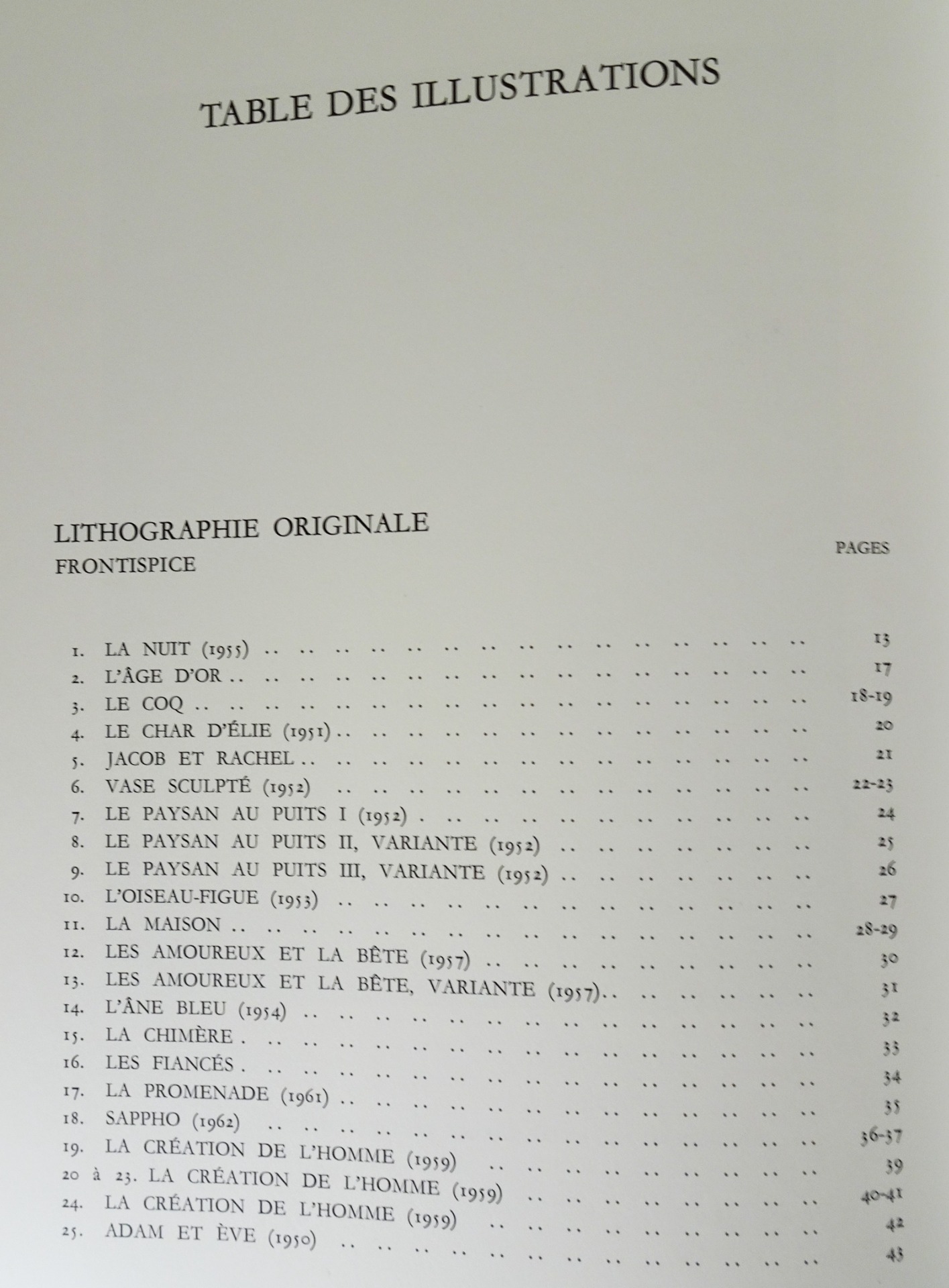 Préface d'André Malraux, rédaction par Charles Sorlier. Édition originale. Lithographie originale couleur "La Nuit" en frontispice pleine page, tirée par Mourlot, précédant 220 illustrations d'œuvres d'art en noir et en couleur.