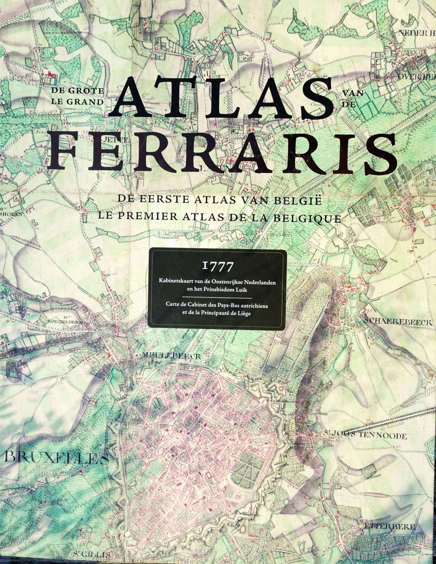 1777 - Graaf De Ferraris overhandigt 275 met de hand getekende en ingekleurde kaartbladen aan keizer Jozef II. Samen vormen die de Kabinetskaart van de Oostenrijkse Nederlanden en het Prinsbisdom Luik - het huidige België, zeg maar. Nooit eerder was een West-Europees land op zo'n gedetailleerde schaal en met zoveel finesse en precisie in kaart gebracht. 2007 - Specialisten van de Koninklijke Bibliotheek van België en het Nationaal Geografisch Instituut starten met hetinscannen van de Ferraris-kaartbladen. Dan is het zoeken naar de best leesbare atlasschaal. Op 1:20.000 past één origineel kaartblad op een dubbele pagina. Ideaal, ook al vraagt dit om een superformaat. Dat moet dan maar. Want een meesterwerk verdraagt geen compromissen. 2017 - Om tegemoet te komen aan de aanhoudende vraag komt er een nieuwe editie van de Ferraris-atlas, ondertussen uitgegroeid tot een waar collector's item. Deze uitgave kwam tot stand in samenwerkingmet de Koninklijke Bibliotheek van België en het Nationaal Geografisch Instituut. Met inleidingen van Ingrid Vanden Berghe, directeur van het NGI, en van Wouter Bracke, directeur Afdeling Kaarten en Plannen van de Koninklijke Bibliotheek.