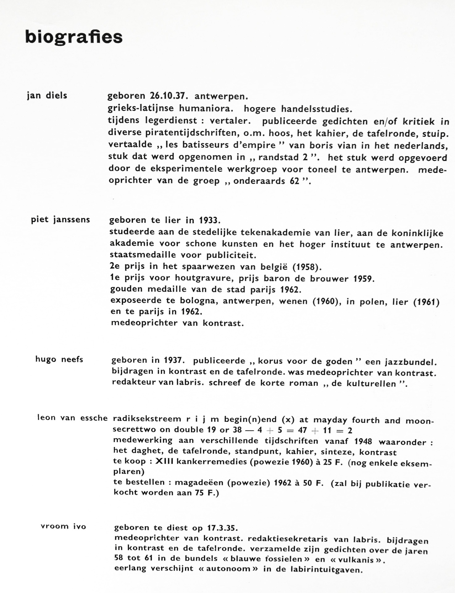 Bert Verbist/Sekretariaat Kontrast - Lier 1962