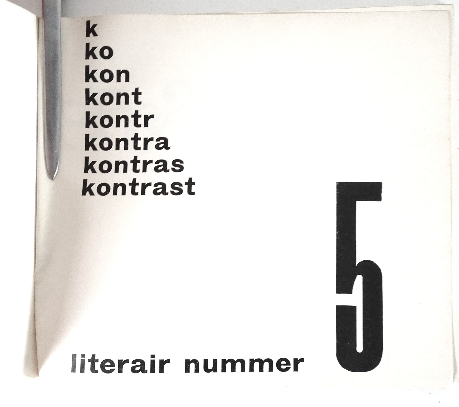 Nummer van het tijdschrift Kontrast gewijd aan avant-garde literatuur in België. met werk van o.a. Jef Andriessen; Freddy De Vree; Max Kazan; Nic Van ruggen; Gil vander Heyden; Marcel van Maele...