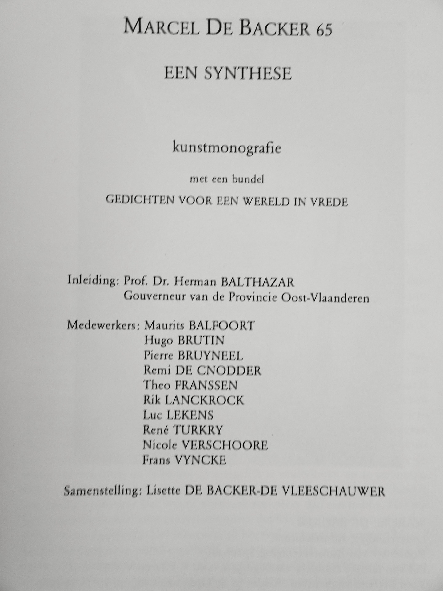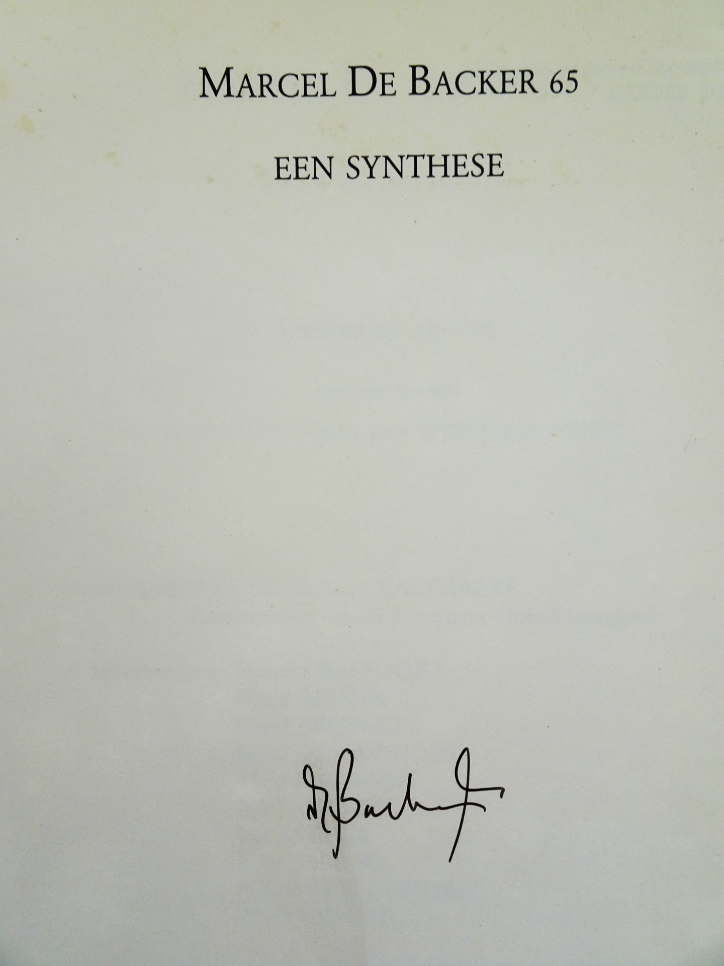1) De Backer 60. Een synthese - Kunstmonografie - gesigneerd door de kunstenaar - Uitgave Spectraal Gent 1986 - hardcover 27,5 x 21 - 136 p. - staat: frontcover en boekband wat verkleurd - verder in prima staat