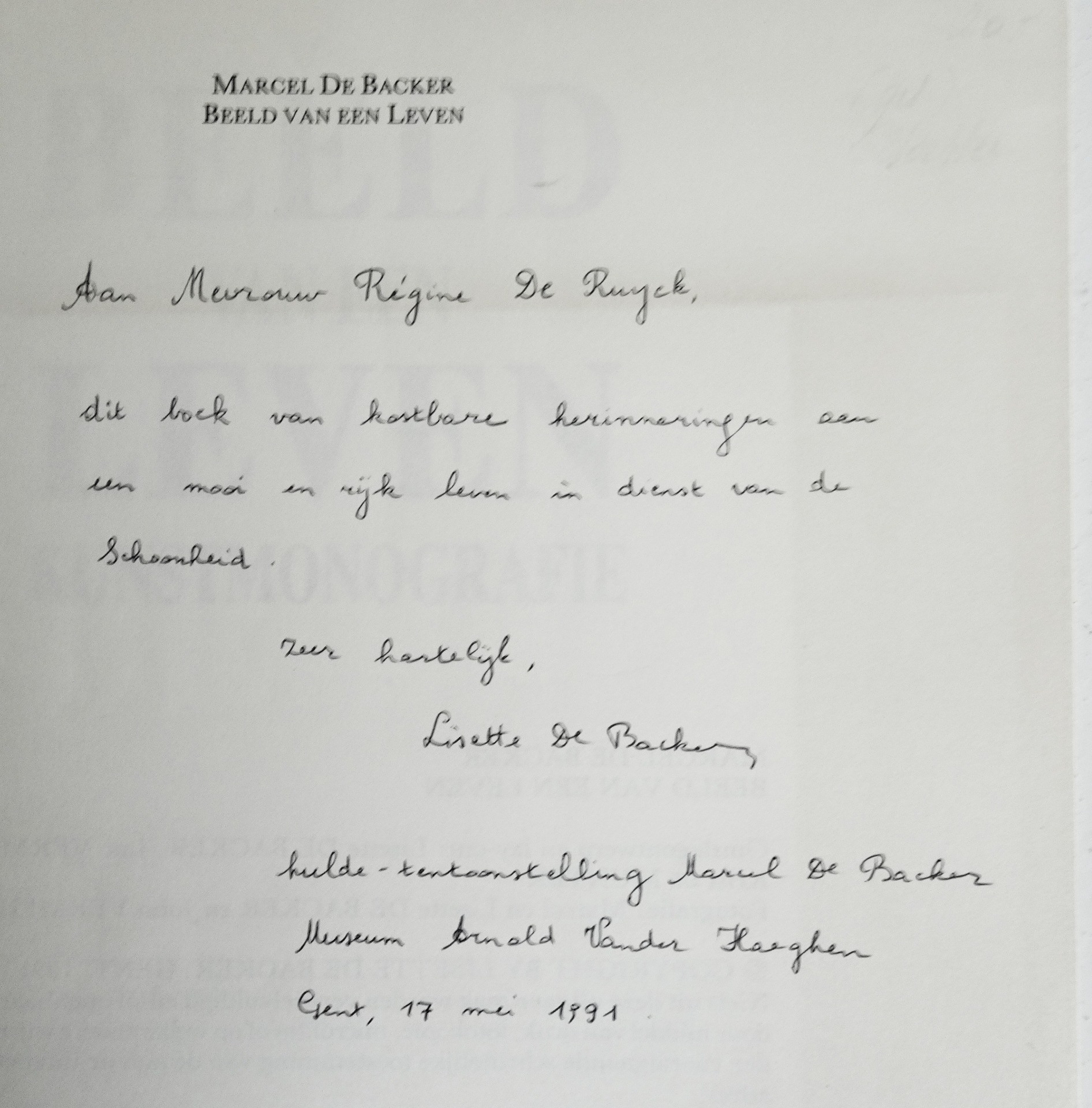 2)Marcel de Backer. Beeld van een leven - door Lisette De Backer - De Vleeschauwer - gesigneerd met opdracht door de auteur (partner van De Backer) - Uitgave Spectraal Gent 1991 - Softcover met flappen - 27 x 21 - 116 p. - Staat: als nieuw