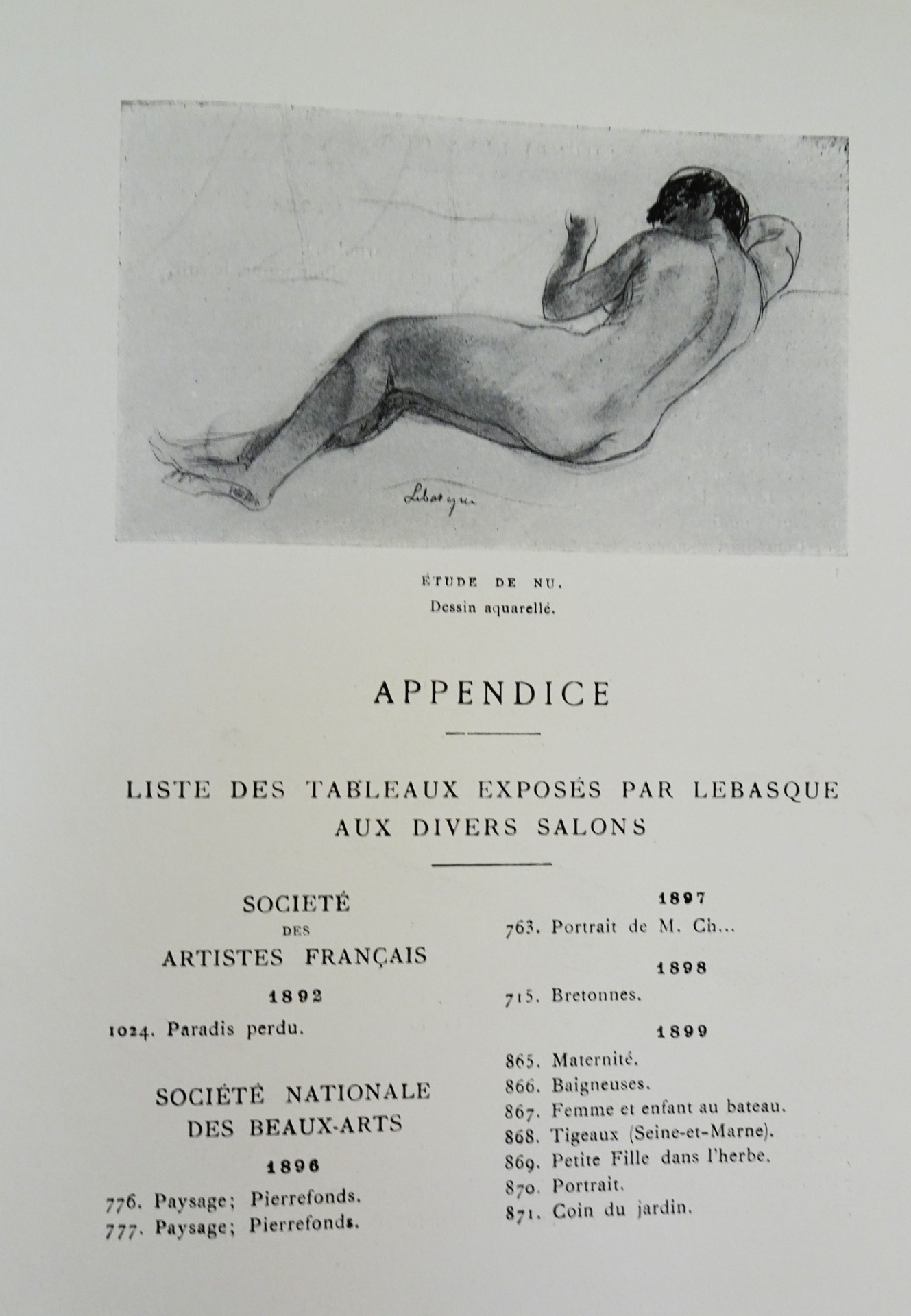 Avec Appendix: Liste des tableaux exposés par Lebasque aux divers Salons, Table des gravures hors-texte, Table des gravures dans le texte, Table des matières