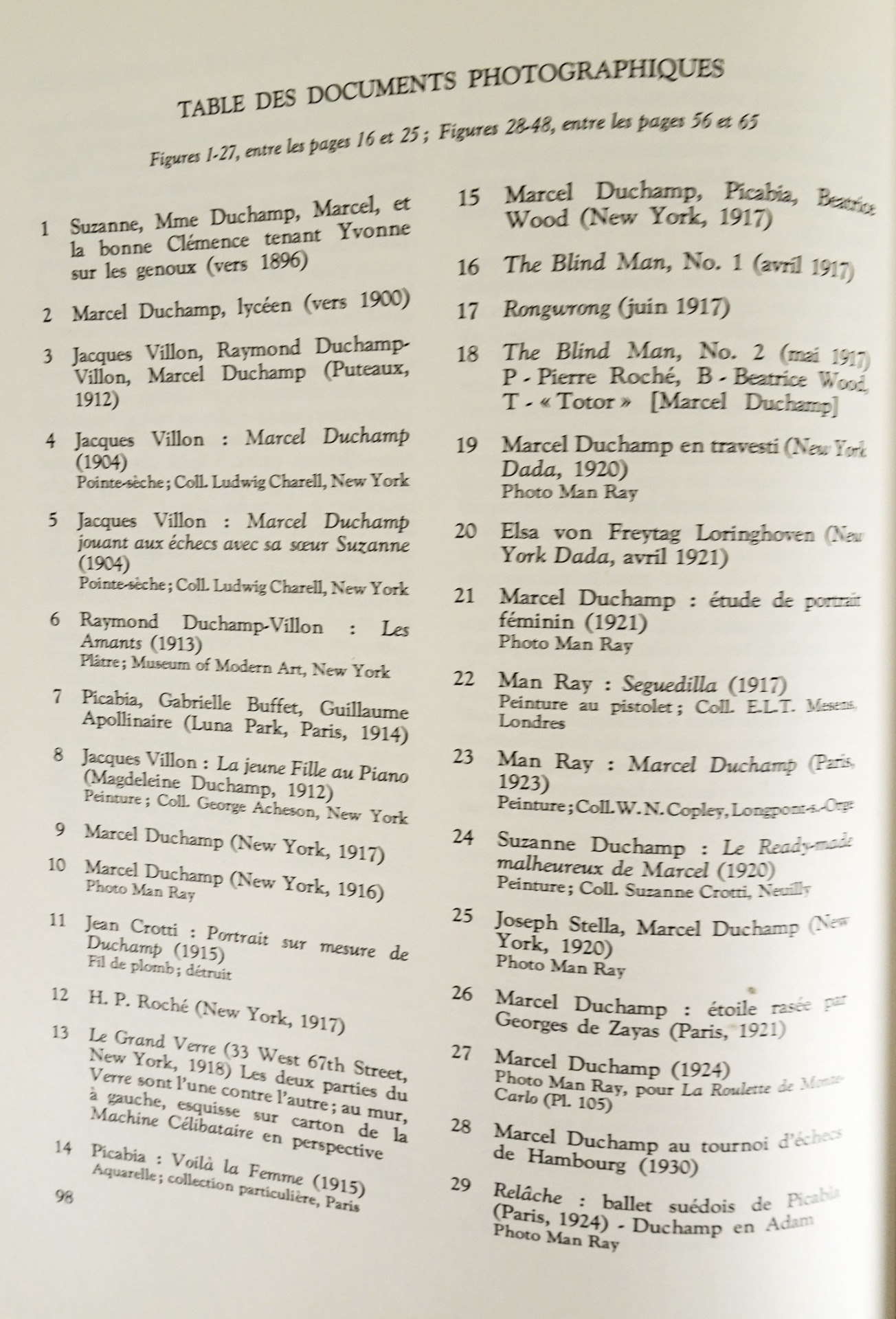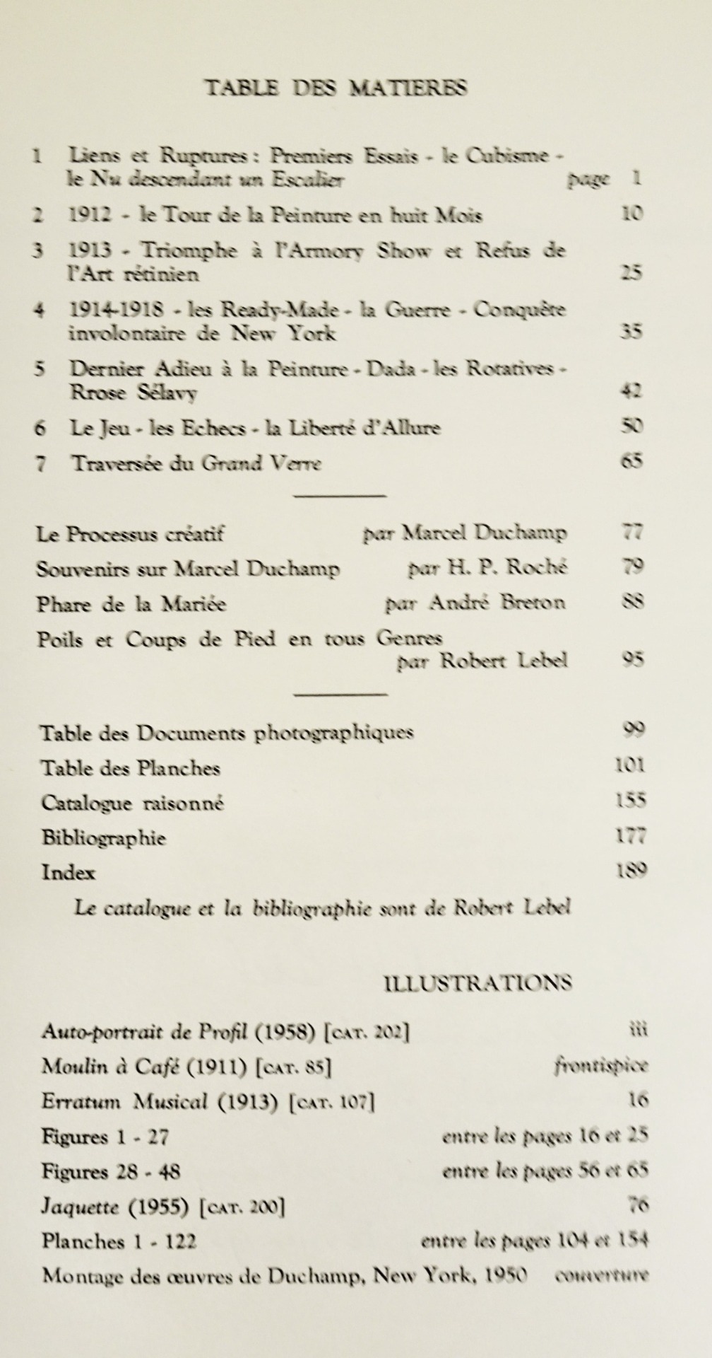 Des textes de Marcel Duchamp, André Breton et H. P. Roché, richement illustré de nombreuses reproductions en noir et en couleurs..
